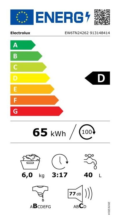 Náplň prádla max. : 6 kgEnergetická třída: DMax. otáčky / min: 1200