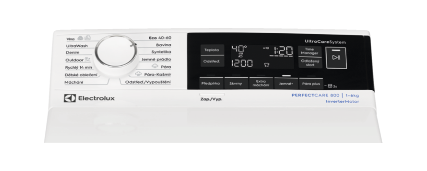 • Funkce: Temp Selection, výběr otáček, předpírka, pouze máchání, Soft Plus, Delay, Time Manager, start/pauza