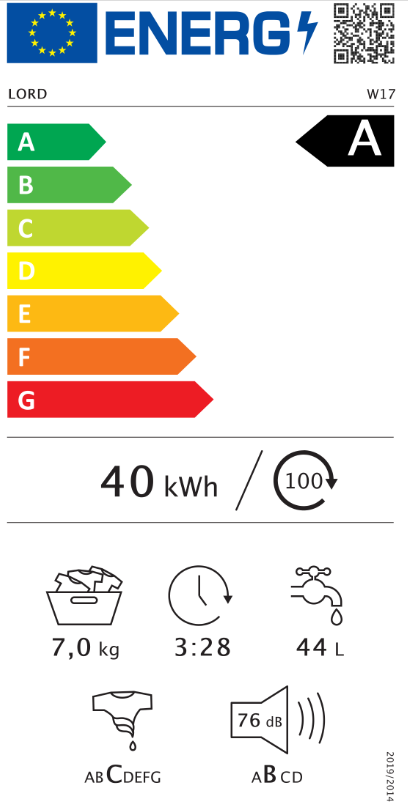 Náplň prádla max. : 7 kgEnergetická třída: AMax. otáčky / min: 1400