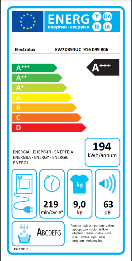 Náplň prádla : 9 kgEnergetická třída: A+++
