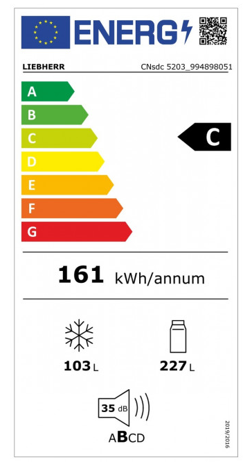 - Spotřeba energie za rok: 161 kWh/rok