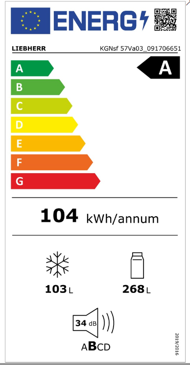 Celkový objem : 371 lEnerg. třída: AHlučnost : 34 dB