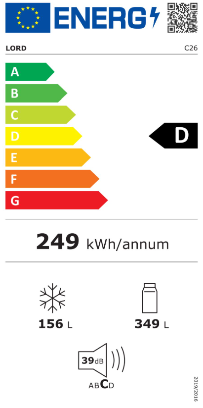 Celkový objem : 505 lEnerg. třída: DHlučnost : 39 dB