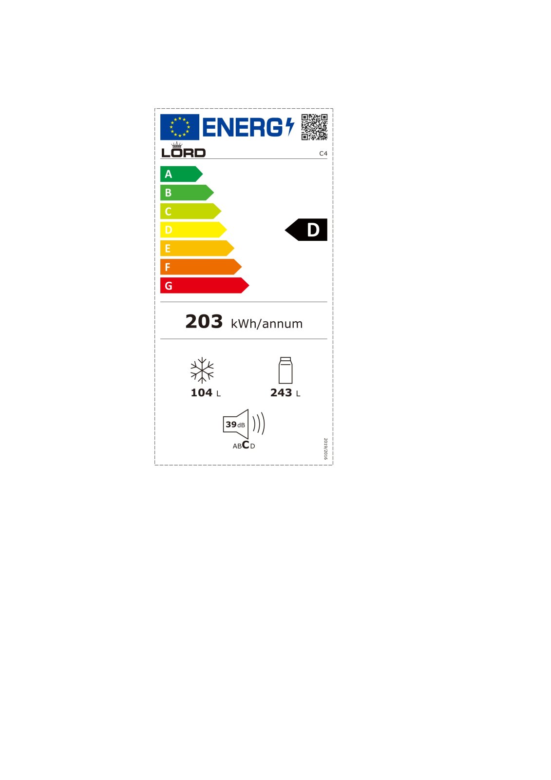 Celkový objem : 347 lEnerg. třída: DHlučnost : 39 dB
