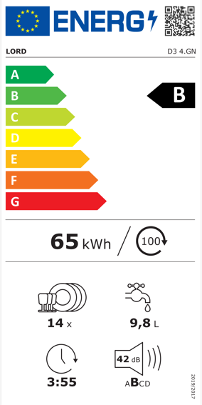 • Volně stojící myčka nádobí LORD D3 se vyznačuje nízkou spotřebou energie – díky tomu spadá do úsporné třídy B . Potěší vás jistě také pětiletá záruka, která naznačuje, že jde o opravdu kvalitní spotřebič.
