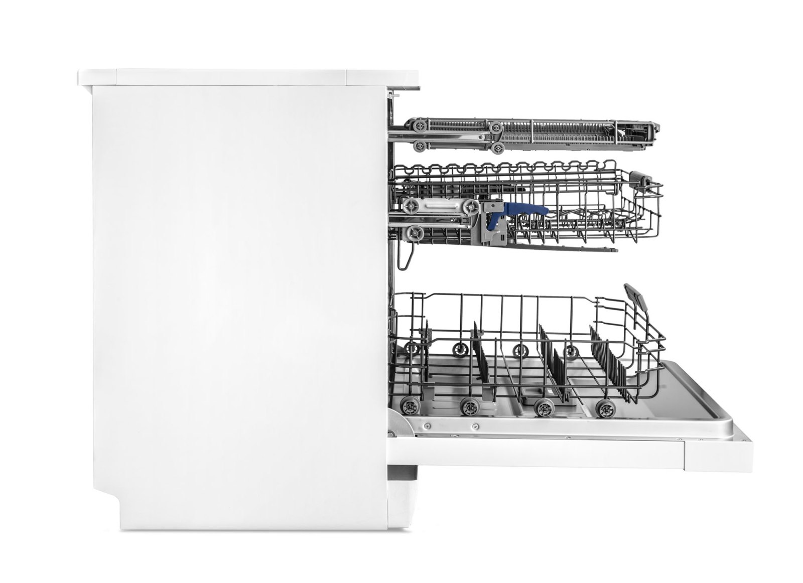 • Myčka zvládne najednou 14 jídelních sad. Je vnitřně uspořádána tak, aby se každý kousek nádobí dokonale umyl a vysušil. Nádobí můžete vkládat do tří úrovní, přičemž jedna z nich je určena především na příbory. Ty kolem sebe budou mít spoustu místa a voda i čisticí prostředek se k nim jednoduše dostane.