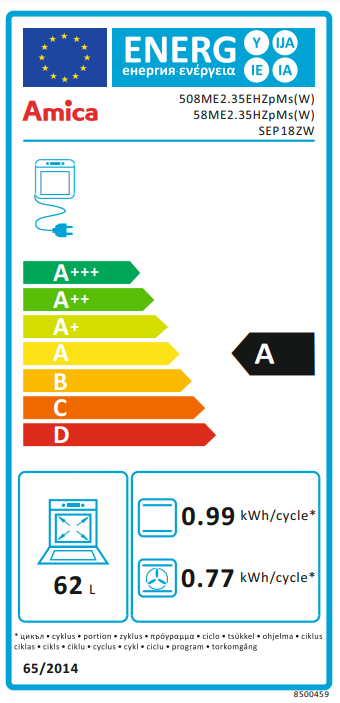 Energetická třída: AŠířka : 50 cmObjem trouby : 62 l