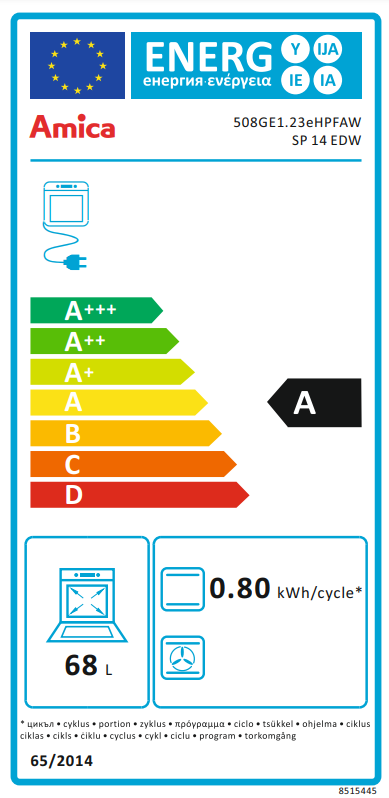 Energetická třída: AŠířka : 50 cmObjem trouby : 68 l