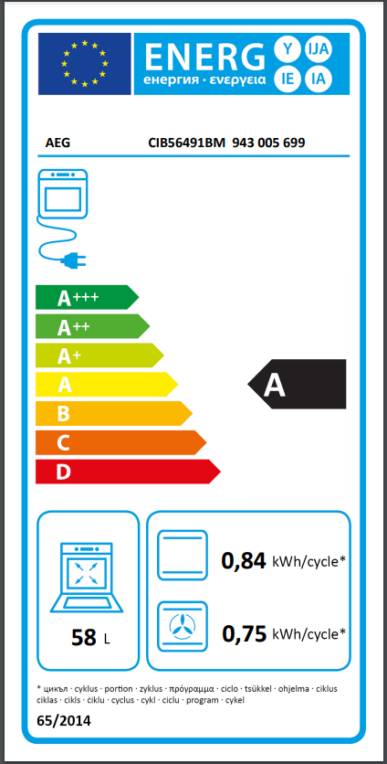 Energetická třída: AŠířka : 50 cmObjem trouby : 58 l