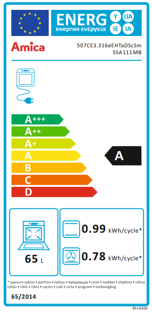 Energetická třída: AŠířka : 60 cmObjem trouby : 65 l
