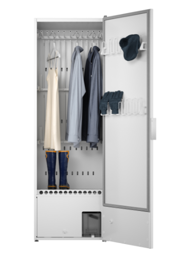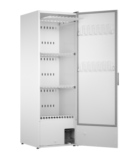 Odsávací sušicí skříň v bílé barvě poskytuje efektivní a velmi šetrné sušení různých druhů prádla, včetně obuvi. Závěsy jsou výsuvné, pro snadné nakládání a vykládání, celková délka zavěšení je 16 m. Ovládací panel je umístěn na dveřích v ergonomické výšce a můžete vybírat mezi automatickými a manuálními programy.