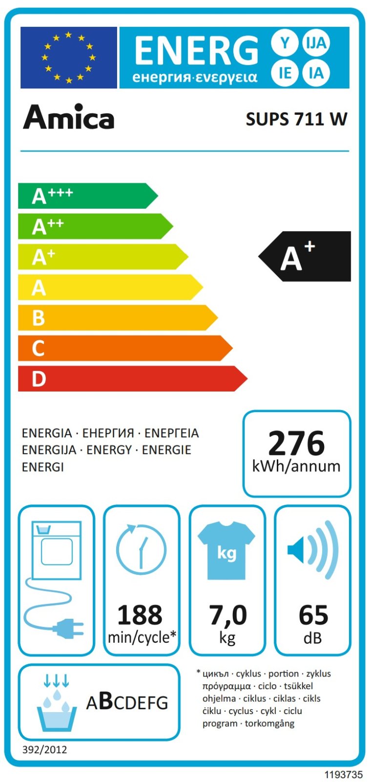 | Energetická třída: | A+ |